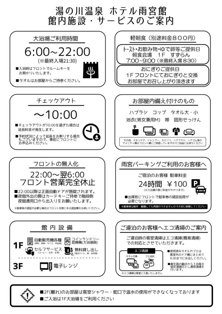 【設備・アメニティ等のご案内】